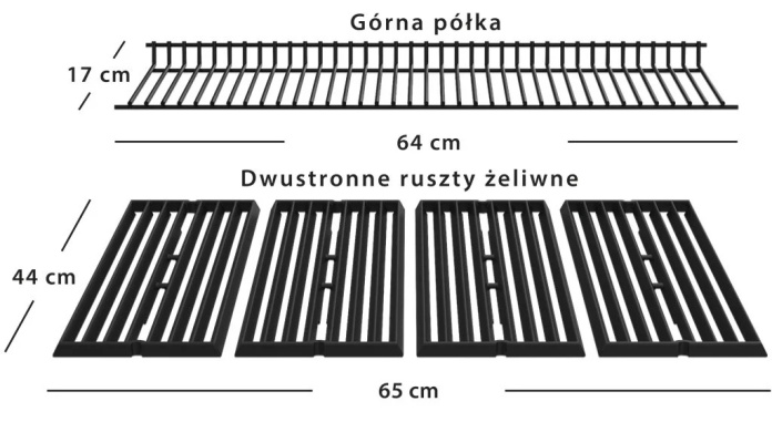 Ruszty żeliwne i stalowa półka do podgrzewania zapewniają doskonałe rezultaty